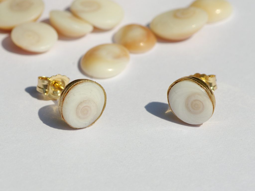 Le coquillage est naturel : non vernis, non poli, je l’huile pour lui redonner le même aspect et la même couleur que dans l’eau. Vous pourrez vous baigner, dormir avec, le garder 24h sur 24. Pensez à l’huiler à nouveau, de temps en temps. Voir ici : Entretien des bijoux.