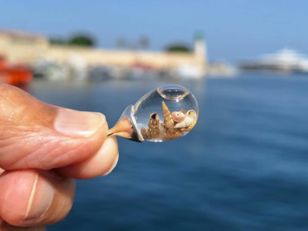Après désinfection je mets les petits coquillages dans de mini fioles de verre pour en faire des pendentifs uniques, hors du commun. Ces fioles de coquillages ont été les premières créations à sortir de l’atelier d’Halliotis en 2012. Et vous n’en trouverez pas ailleurs