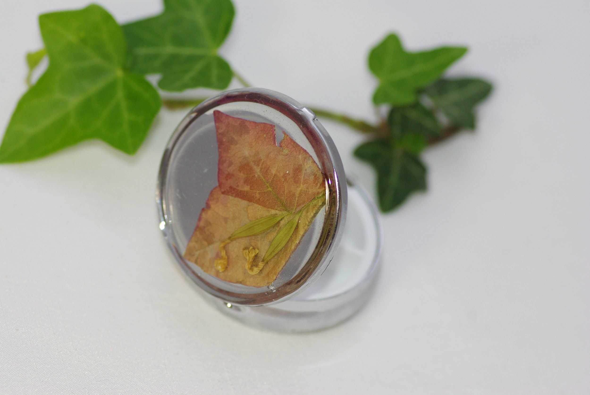 - résine époxy : La résine protège durablement le végétal et la boite à pilule restera longtemps intacte.