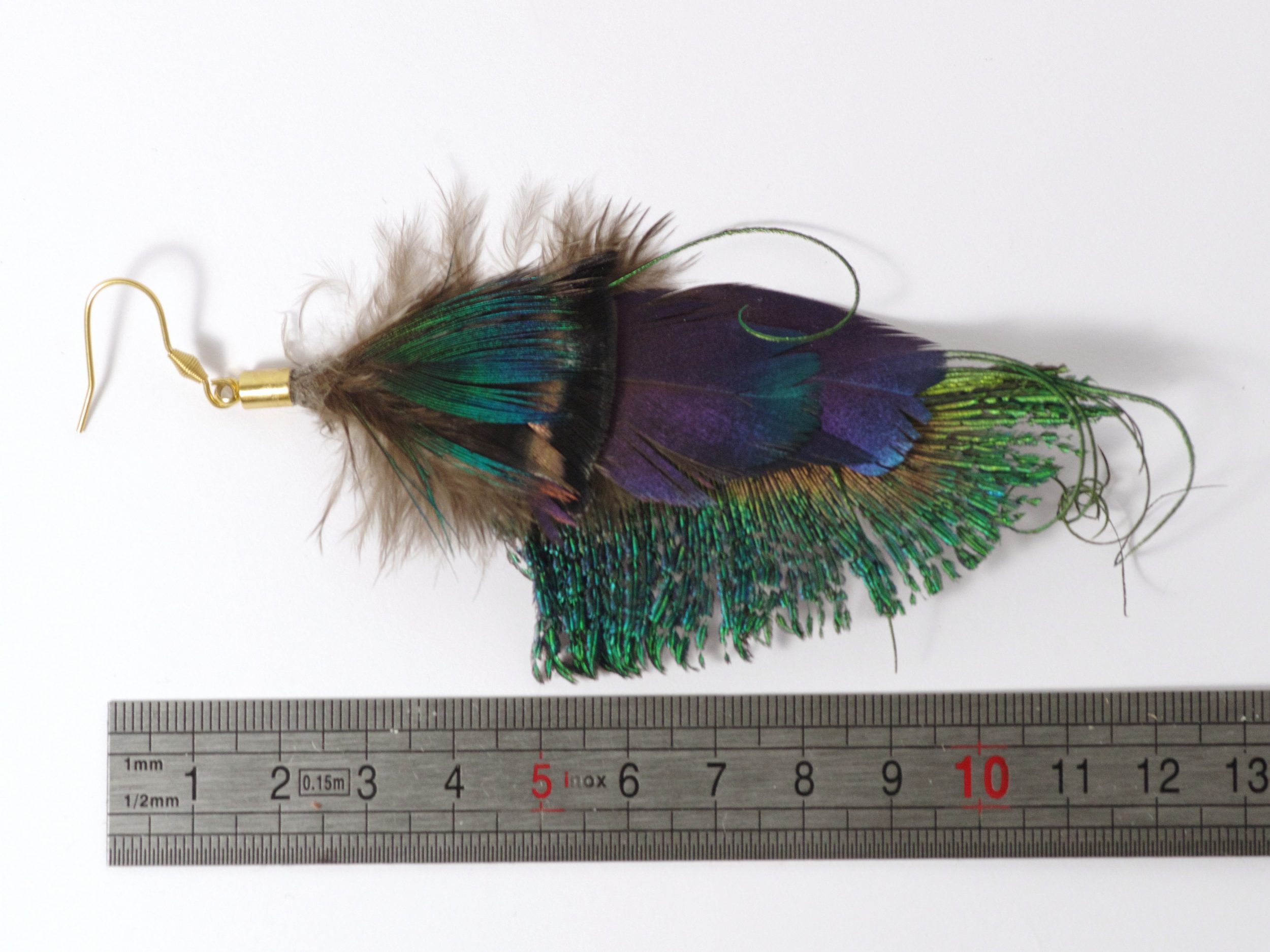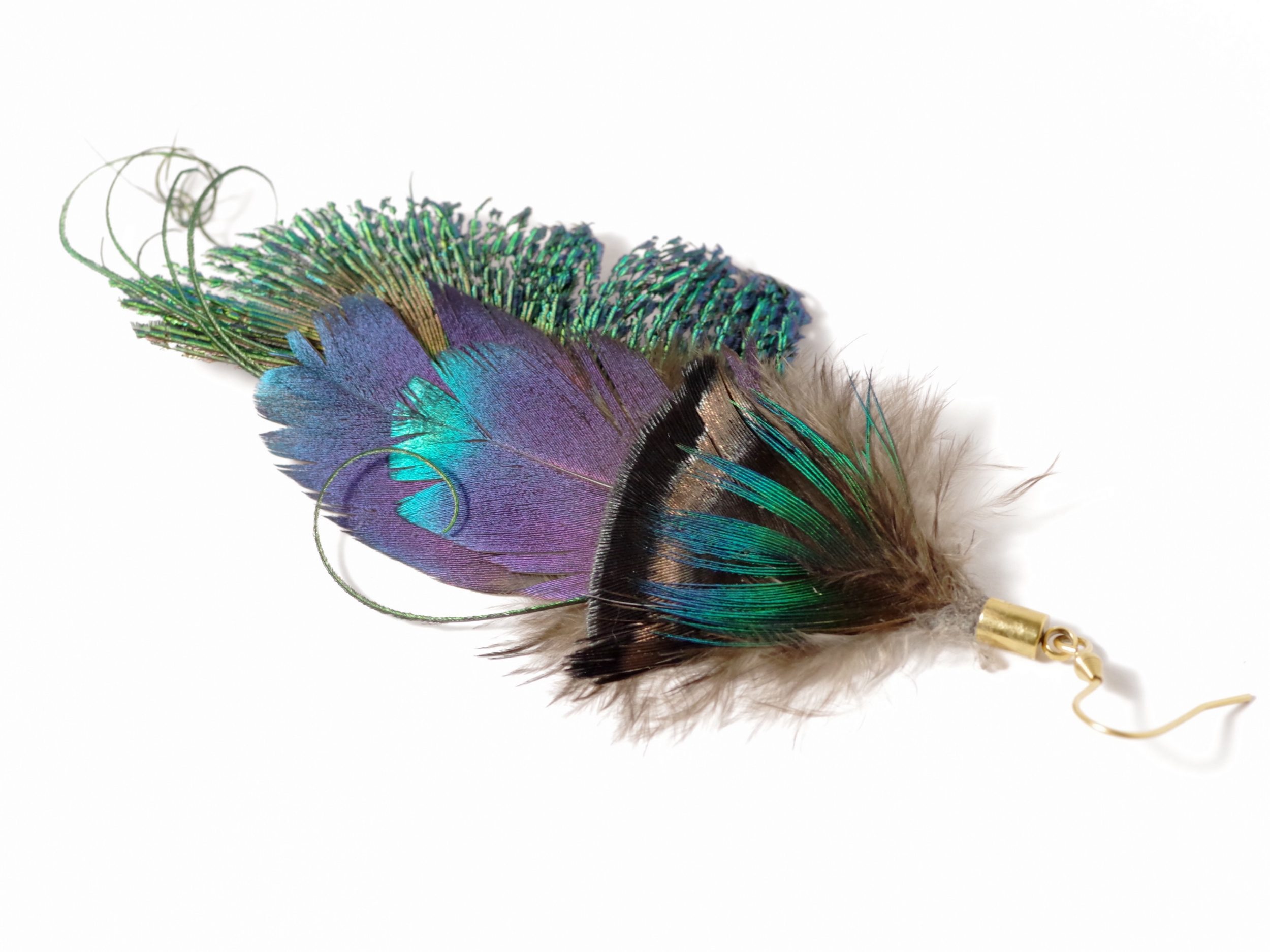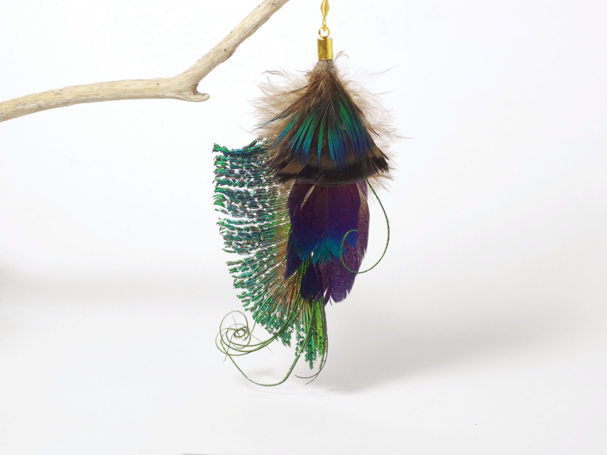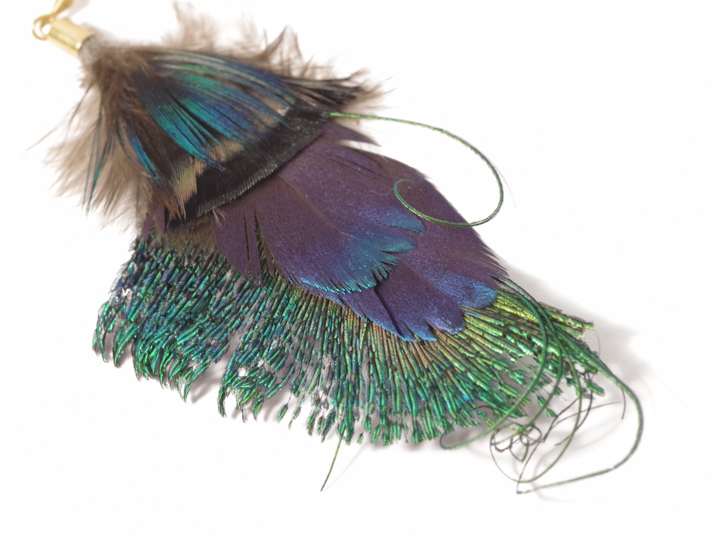 Et jai ajouté de longues et fines barbes d’une autre plume de paon que j’ai frisées.