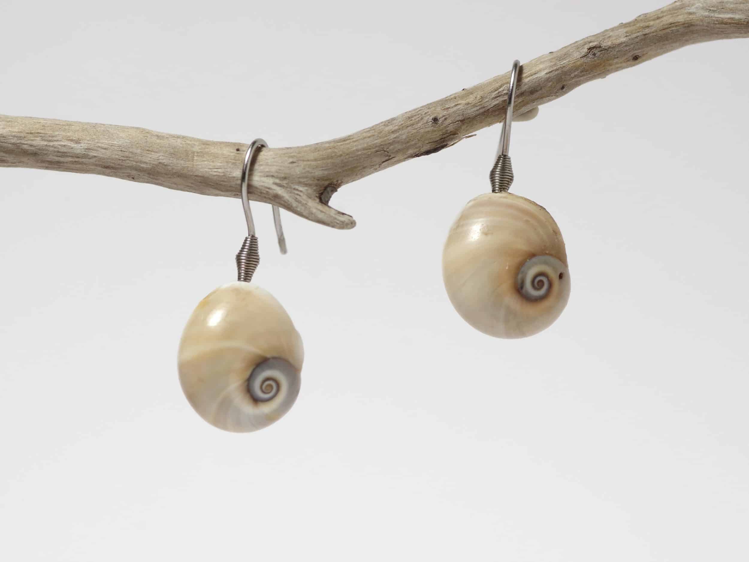 Les pendentifs de ces boucles d’oreilles sont de jolis coquillages natices de méditerranée.